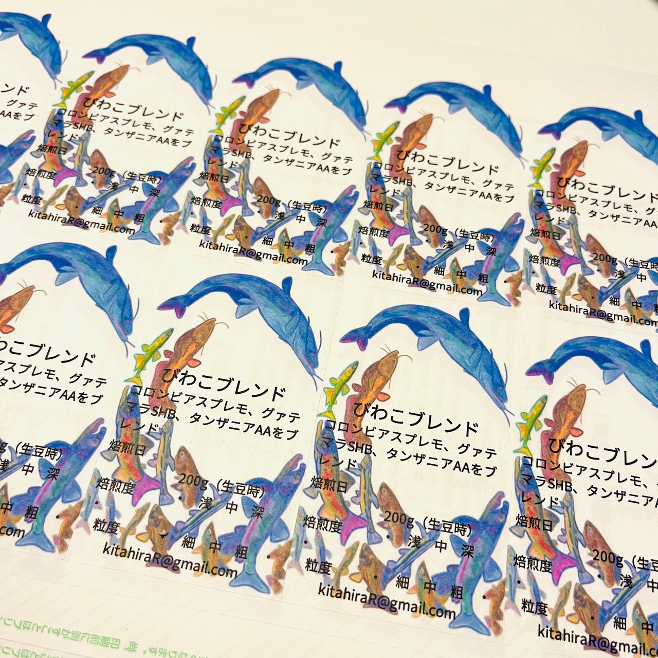 ラベルにはびわこ博士、黒川ルイくんのイラストを使っています。